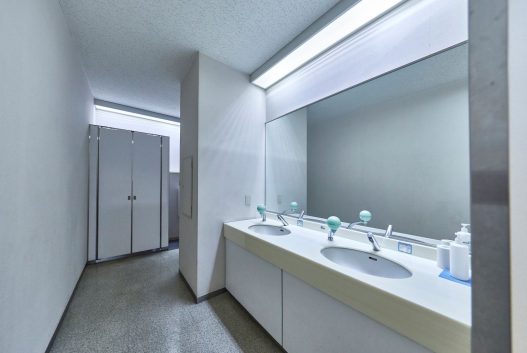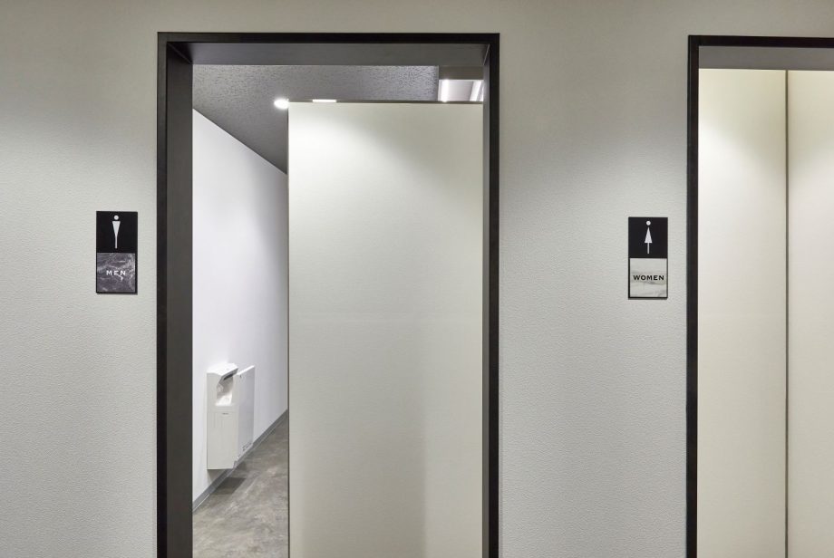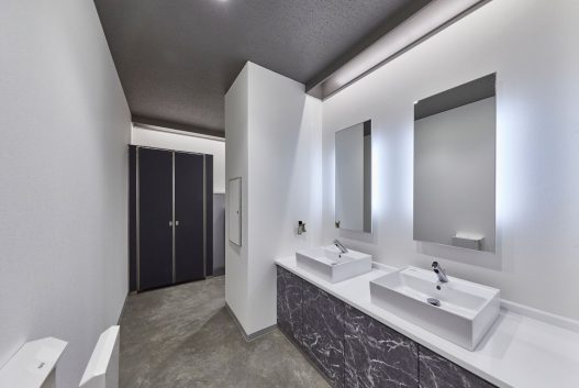 19階建てオフィスビルの1フロアをリモデル。共用部の壁や床の表装替えを中心に、照明器具の交換や近年オフィスを選ぶ際に重視されているトイレの設備交換などを行った。